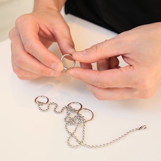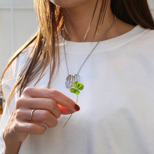 職業柄指輪を着けられない方のために、シンプルで洗練されたネックレスを用意しました。ネックレス単体での着用はもちろんですが、シンプルなので重ね付けにも最適です。また、余った指輪をネックトップにしたり、グラスホルダーとしたりの使用も可能。様々な応用で日常に4重奏の彩を添えます。