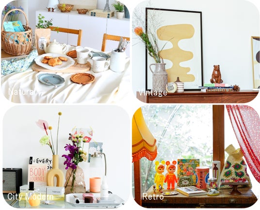 「Natural/Vintage Like/City Modern/Retro」のテイストをベースに、様々な雑貨コーディネートを提案 ※画像内の雑貨は購入可能(一部のスタリング用グッズは除く)