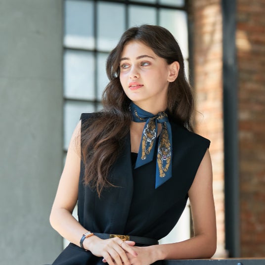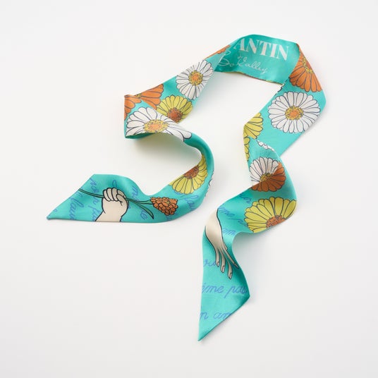 「デザイン」「素材」「縫製」にこだわり抜き、数多くの試作を重ねて、完成させた上質なシルクスカーフ。お鞄に巻いた時のインパクトは圧巻。
