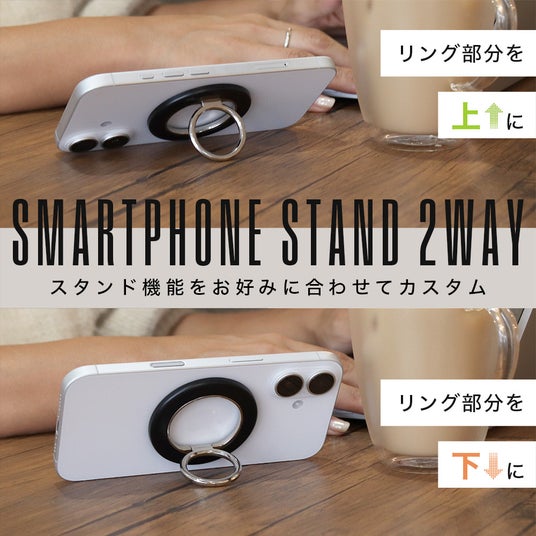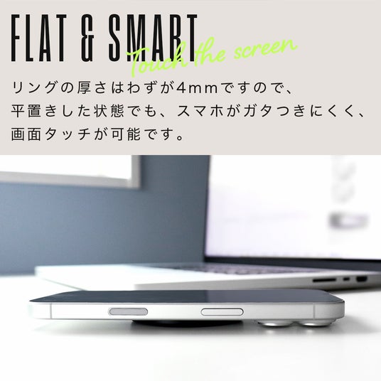 リングの厚さはわずが4mmですので、平置きした状態でも安定性が高く、スマートフォンの操作もなめらかにできます。