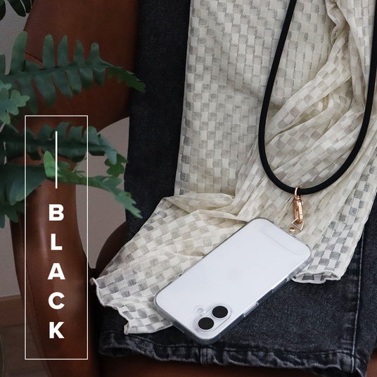 スマホケースに挟むだけで、首・肩・斜めがけして使えるシリコン製ショルダーストラップです。