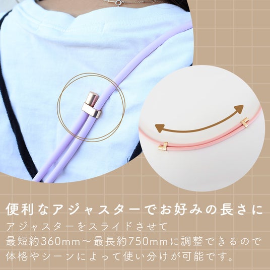 シリコンショルダーストラップ 自由に長さ調整できる 3way 全5色(MOT-STRAP01)