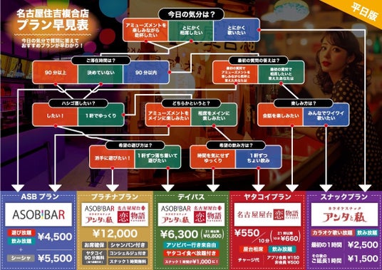 さらに、全エリアを無制限で楽しめるお得なプランは6300円。名古屋の夜を満喫するにはこれ以上ない贅沢な選択です。