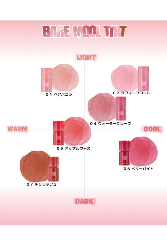 水彩画のようにはじける 「ムル(水)」グラデーション 果汁の色合いをそのまま唇にON塗った瞬間唇にスッと染み込む