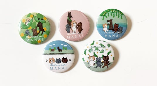 5種コンプリートセット購入プレゼントの缶バッチとマグネット