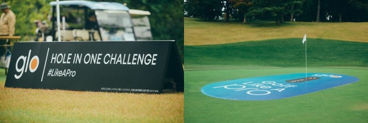 PAR 3の2番ホールは「glo(TM)」による今回限りの特別アクティビティとして、「世界一ホールインワンが出やすいコース」に。1stショットを打つ際、4人のうち1人でもグリーン上に敷かれたシートに入れることができれば、ホールインワンになるという初心者でも存分に楽しめる仕様となっていました。人生で一度きりになるかもしれないホールインワンを目指して、狙い澄ましたショットを打つ姿が印象的でした。