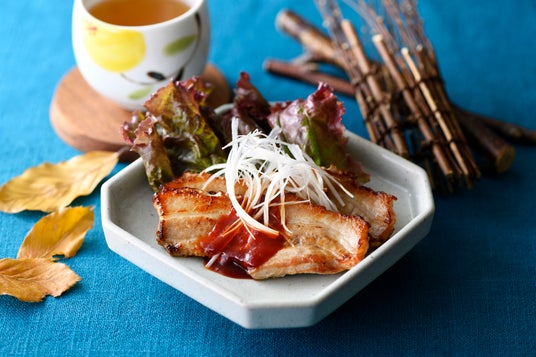 塩麴でマリネした豚肉を香ばしく焼き上げました。
