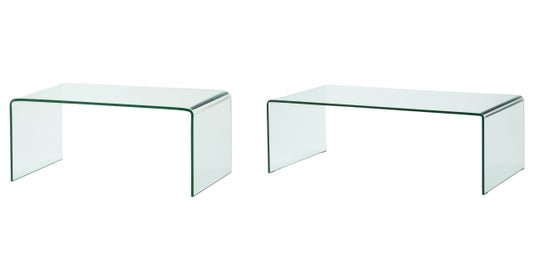 一枚のクリアガラスを曲げて仕上げたシンプルで美しい曲線が魅力のガラステーブルです。どんなお部屋にも馴染みやすく、圧迫感のない広々とした空間を演出できます。隠れてしまいがちなラグマットを引き立ててくれるのもうれしいポイントです。テーブルの下にライトやオブジェなどを置いたコーディネートも幻想的でおすすめです。また、金属を使用していない美しい作りながら、万が一の時も安心の強化ガラス仕様で品質も担保しています。