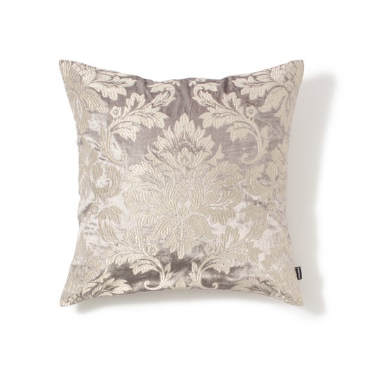 艶感のあるビスコースベルベット生地に、艶感のある糸で刺繍を施したエレガントなクッションカバーです。オーナメント柄を全面に刺繍で表現したことで、インテリアコーディネートに取り入れることで華やかな空間を演出できるデザインに仕上げています。オーナメントモチーフは流行り廃りがなく、飽きのこないデザインなので長くご愛用いただけます。