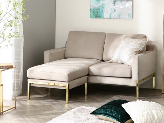 様々なライフスタイルや使用シーンに合わせてコーディネートできるコンパクトな3WAYカウチソファです。座クッションの組み合わせを変えれば通常のソファとしても、オットマン付きソファとしてもお使いいただけます。ゆったりと足を伸ばしてリラックスしたり、クッションを枕にして横になったり、2人横並びで映画やゲームを楽しんだり、人が集まる時にはオットマンを椅子替わりにお使いいただけるため、組み合わせ次第で様々なシーンで活躍します。背もたれが高すぎないのでお部屋の中心に置いても視線を遮らず、一人暮らしのお部屋も広く見せてくれます。飽きのこないベーシックなフォルムと直線的なラインのデザイン、そして細めのゴールドの脚が特徴で、モダンで洗練された上品な雰囲気を演出します。