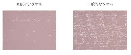 お洗濯の際の毛羽落ちが一般的なタオルと比べて1/10以下と極めて少ないため肌への毛羽の付着が気になりにくく、快適にお使いいただけます。