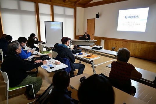 講師や学芸員が詳しく説明してくれる観察会。園内を散策し、フィールドスコープや双眼鏡を使って野鳥を観察します。水辺を好むカモやサギの仲間は、体が大きく動きがゆっくりなため、初心者にもおすすめ。観察後は、公園管理事務所の会議室に移動し、どんな鳥が観察できたかを確認する「鳥合わせ」を行います。
