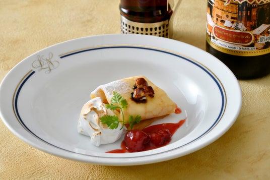 【デザート】ショコラバナーユクレープ 苺ソースとともに