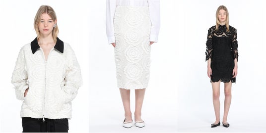 左からブルゾン ¥209,000、ミニドレス ¥151,800、ペンシルスカート ¥97,900