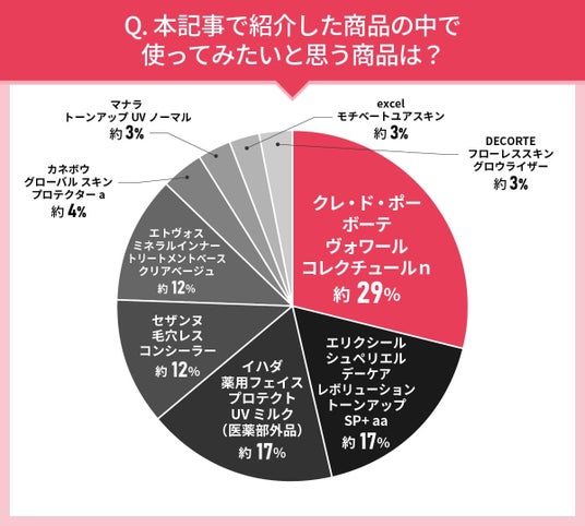 – 内側から輝くツヤ肌を演出するという文が魅力的だった。デパコスの下地を使ってみたい。(30代 女性)