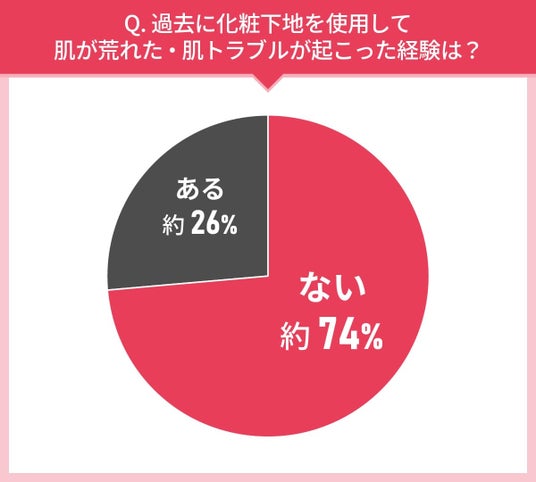 約74%の人が肌トラブルの経験はないと回答している一方で、約26%の人があると回答しました。少なからず合わない化粧下地を使うと肌トラブルが起こる場合があるということですね。