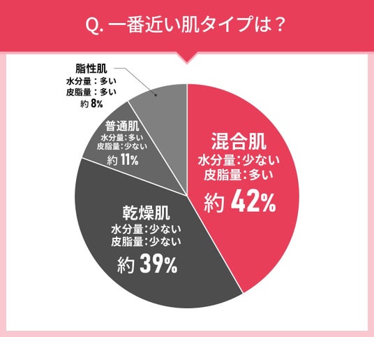 – 混合肌(水分量少ない/皮脂量多い):約42%