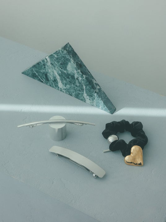 デザインの異なるバレッタとモチーフクリップを 贅沢にご用意した、 シュシュ付きバレッタセット。 2 種類のバレッタとシュシュのメタルはゴールド派 ・ シルバー派に 合わせてご用意しながら、 すべて一緒につけたときのバランスを考え、 ハートクリップとサークルクリップはカラーを変えてアクセント に。 シュシュはメタルがついており、 ブレスレット感覚で 手元にはめてもかわいいデザイン。 すべてレイヤードしても、 それぞれをひとつずつ使っても アレンジ可能な 「MANY WAY」 に仕上げました。