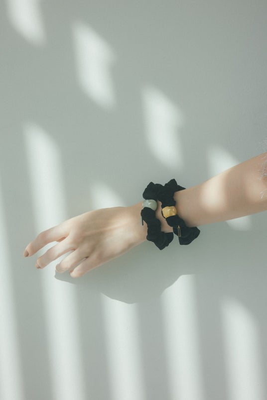 シュシュはバングルのように手元に添えても可愛い。