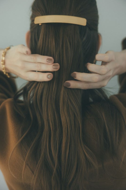 きれいめハーフアップは、ワイドバレッタのみを潔く。