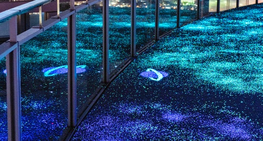 冬の凛とした空気の中、360度オープンエアで景色をお楽しみいただける屋上「ルミ・スカイ・ウォーク」で、まるで銀河を散歩するような体験も。