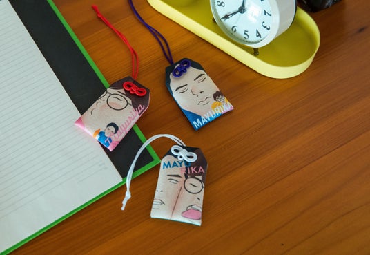 普通のお守りに見えて、中に入った音声チップのボタンを押すと2人の声が聞ける喋るお守り。応援、癒やし、笑いの3種類で、かなしいとき、緊張するとき、嬉しいとき……いろんな気持ちに寄り添ってくれます。持ち運べるサイズ感なのでバッグの中にこっそり忍ばせられます。持っていたら受験やテスト、仕事も楽しく乗り切れそう!