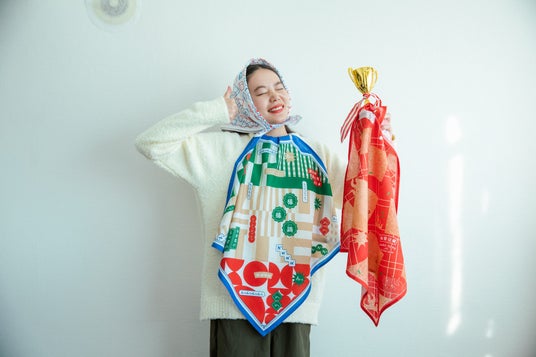 中華コレクションネタの中に出てくる「杏仁豆腐のもこもこパジャマ」「麻婆豆腐のチェックシャツ」「棒棒鶏のうっすいインナー」をプリントしたマルチクロス。服の首もとにクロスを引っ掛ければ、まるで着ているように見えるというのがポイントです。約56cm×56cmという大判サイズでお弁当包みや旅行の荷物の仕分けに、スカーフにしたり、お部屋でインテリアとして使ったりと多様なアレンジが可能です。