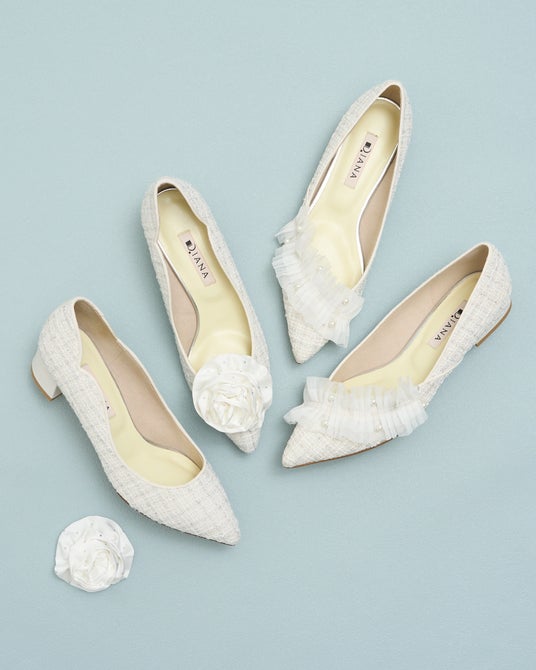 人気のコサージュ付き2WAYパンプスとフリルチュールフラットシューズにWEB限定カラーが新登場。冬に映える白のツイードはオケージョンシーンにはもちろん、日常のコーディネートにも華やかさをプラスしてくれます。