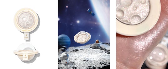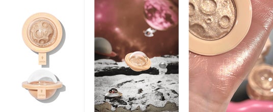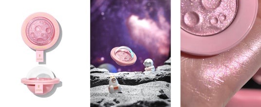 また、『Lunar Glow Highlighter』は、可愛らしいUFO型のケースに月面をイメージしたデザインに加え、輝きの変化を楽しめる偏光パールをたっぷりと配合し、ひと塗りするだけでホリデーシーズンにぴったりな華やかなツヤ肌を実現します。頬やおでこ、鼻筋や鼻先などのハイライトゾーンにはもちろん、アイシャドウや涙袋メイク、鎖骨などボディのツヤメイクとしても活躍します。カラーは、ホワイトパールが鮮やかに輝く「Vanila Frost」、ゴールドカラーがベースの「Tea Cake」、可愛らしいピンク色の「Heart Galaxy」、シルバーを基調とした「Neutron Star」の計4色展開となっております。