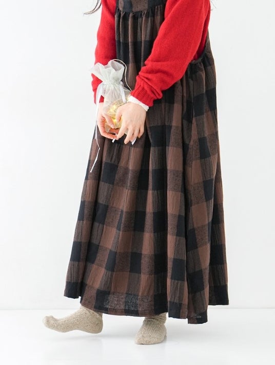 秋冬らしいウォーム感のあるウールコットンリネンの素材を使用したジャンパースカートです。