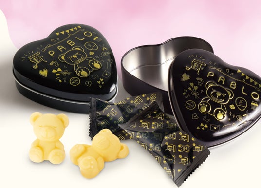 PABLO(パブロ)の看板メニューであるサクサクのタルト生地にチーズクリームを入れ、表面にアプリコットジャムをたっぷり重ねた、絶妙なふわとろ食感が魅力のチーズタルトをイメージしたくま型チョコレート。いつでも気軽に濃厚なチーズタルト味を楽しめる一品!エンボス加工を施した高級感溢れるハート缶と大容量BOXの2種類で12月上旬より全国のアミューズメント施設(ゲームセンター、オンラインクレーンゲーム)に登場!