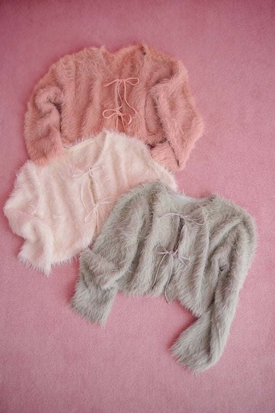 リボンを結んでトップス風に着ても可愛いし、前開きでリボンをだらっとさせてもまとまるように長さも調節したよ。