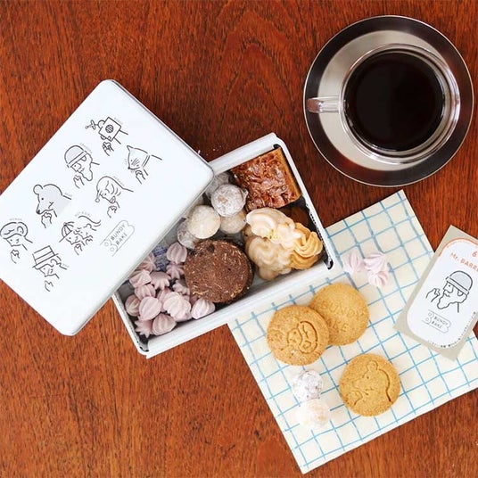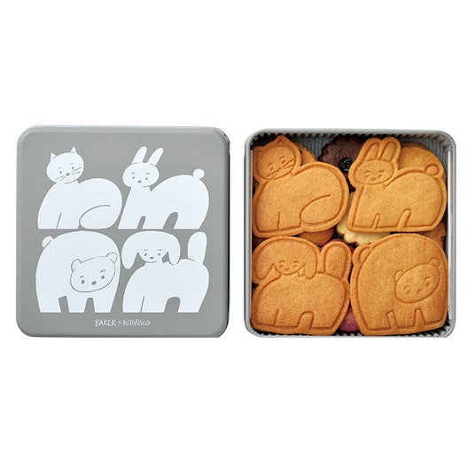 イラストレーターのkilldiscoさんとのコラボレーションクッキー缶。可愛いどうぶつたちのクッキー4種と小さな焼き菓子9種類を詰め合わせた、ちょっとずつ色々な味が楽しめるクッキー缶です。