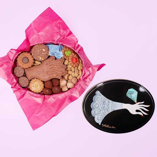 イラストレーター・松下さちこさん描き下ろしデザイン缶に、バラエティ豊かで華やかなクッキーを一つ一つ丁寧に詰め込みました。