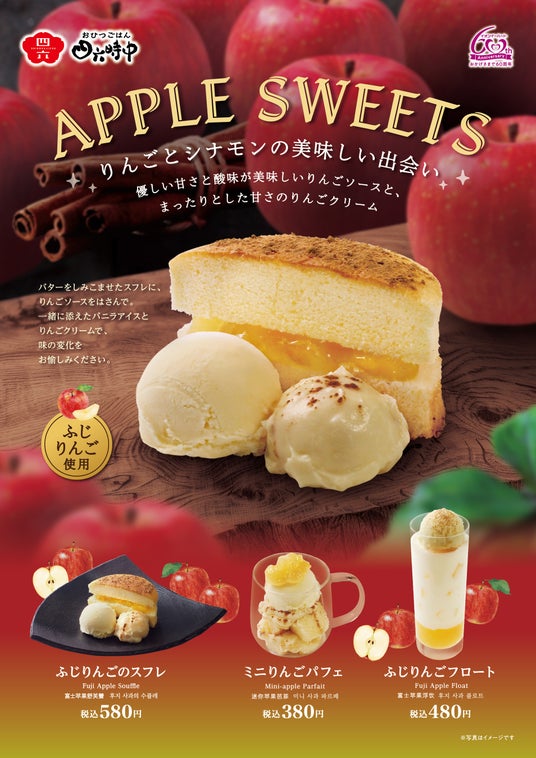 全国のイオンなどのショッピングセンターでレストラン「四六時中」を展開する株式会社イオンイーハート(所在地:千葉県千葉市、代表取締役社長:奥野善徳、以下当社)は、『おひつごはん四六時中』で、ふじりんごを使用した冬季限定りんごスイーツフェアを12月11日(水)より開催いたします。