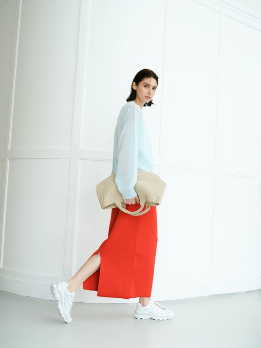 Pullover¥29,700 Skirt¥25,300 Necklace<PHILIPPE AUDIBERT>¥12,100 Necklace<PHILIPPE AUDIBERT> ¥14,300 Bag<NAGHEDI>¥51,700 Shoes<SALOMON> ¥28,600