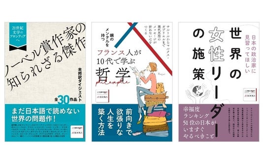 まず第一弾として、『ノーベル賞作家の知られざる傑作 未邦訳ダイジェスト全30作品』『鋼のメンタルを持つフランス人が10代で学ぶ哲学』『日本の政治家に見習ってほしい 世界の女性リーダーの施策』の3冊を電子書籍として順次刊行します。