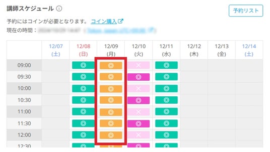 講師詳細ページの「講師スケジュール」よりご希望の日時を選択してください。