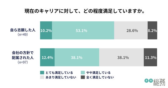 また、自ら志願した人の方が、キャリアに対する満足度が高いことがわかりました。
