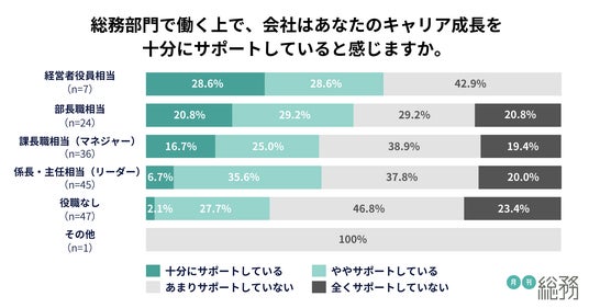 ・役職がない総務ほど「会社からのキャリア成長のサポート不足」を感じる傾向が顕著に