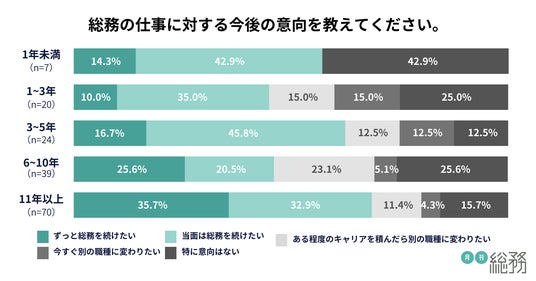 ・総務経験年数が長いほど「ずっと総務を続けたい」と答える割合が増加