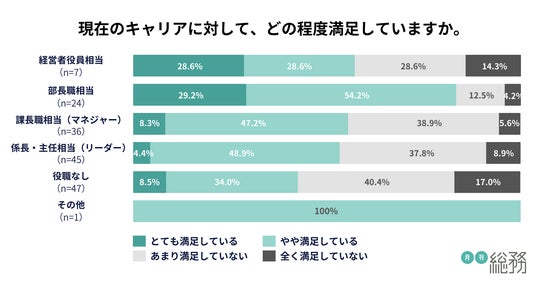 また、役職が高いほど現在のキャリアに対する満足度が高い傾向が見られました(n=160)。