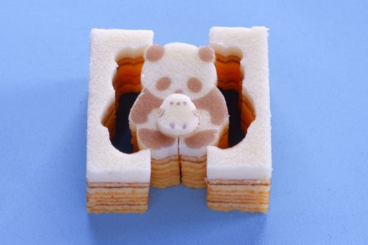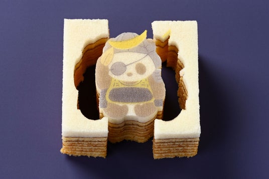 桃太郎になりきった、かわいいパンダの型ぬきバウムができました。きびだんごをお腰につけて、鬼退治にいくところ。桃の果汁がすっきりと爽やかに香る、まろやかな甘さのもも味です。