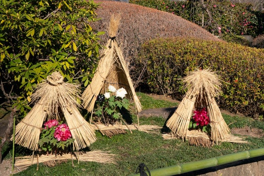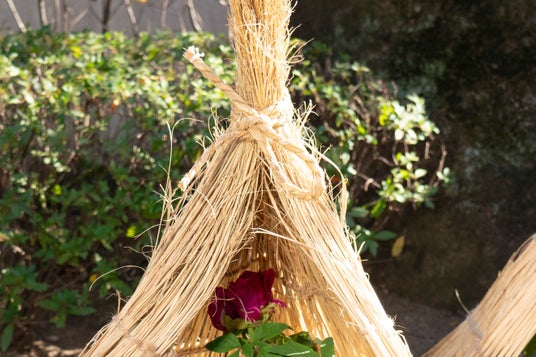 “わらぼっち”は地域によって形や結び方等が様々ありますが、当苑では開苑当時から荒縄を用いた男結びや梅等のお花を模した飾り結びで見る人の目を楽しませています。