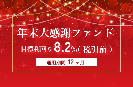 個人投資家の皆様にさまざまな投資機会を提供するオルタナティブ投資プラットフォーム「オルタナバンク」を運営するSAMURAI 証券株式会社(本社:東京都港区、代表取締役社長:山口 慶一)は、新商品『年末大感謝ファンドID793』を公開いたしました。(詳細: https://www.alternabank.jp/fund/detail?id=793)