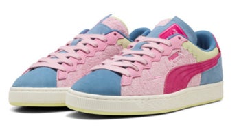 コラボレーションシューズは、「EASY RIDER(イージーライダー)」と「SUEDE(スウェード)」がラインアップされています。EASY RIDERは、作中の「だるまさんがころんだ」のシーンにインスパイアされたデザインを取り入れ、ヒール部分のホログラムは赤から緑に変化し、さらに、ヨンヒ人形がデザインされたタグが、このコラボスニーカーを仕上げています。また、SUEDEは、鮮やかなカラーリングとジグザグのオーバーレイを取り入れた、作中の不吉な階段の部屋をテーマにしたデザインが施されています。