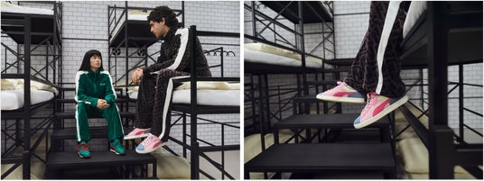 「PUMA x SQUID GAME(TM)︎」コレクションは、「イカゲーム」の世界観、キャラクターにインスパイアされたコレクションで、T7トラックスーツやスニーカーなど、多彩なアイテムがラインアップされています。