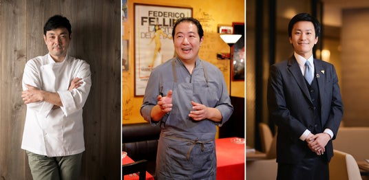 (左から) 「アコルドゥ」川島 宙シェフ、「antica locanda MIYAMOTO」宮本 けんしんシェフ、「THE THOUSAND KYOTO」シェフソムリエ・岩田 渉