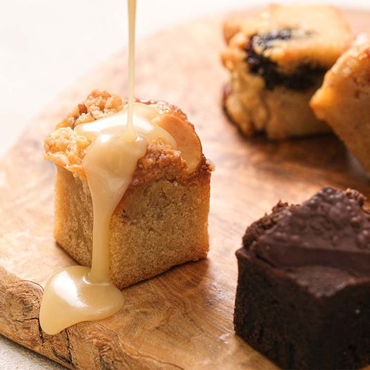 バターがふくよかに香るフィナンシェ生地の中に、ジャムやクリームなどを閉じ込めることで、しっかりと食べごたえがありながら、それでいて繊細な作りの新感覚焼き菓子です。外はカリッとした食感を残しつつ、中のしっとりとしたジャムやクリームを楽しめます。