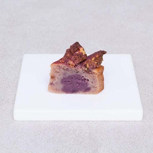 フィリングは紫芋100%。ひと手間かけ、オーブンで焼き芋にした後にペーストにすることで、紫芋本来の香ばしさを引き出しました。豊かな風味とともに、ひと口ずつほっこりとした温かみを感じていただけるはず。
